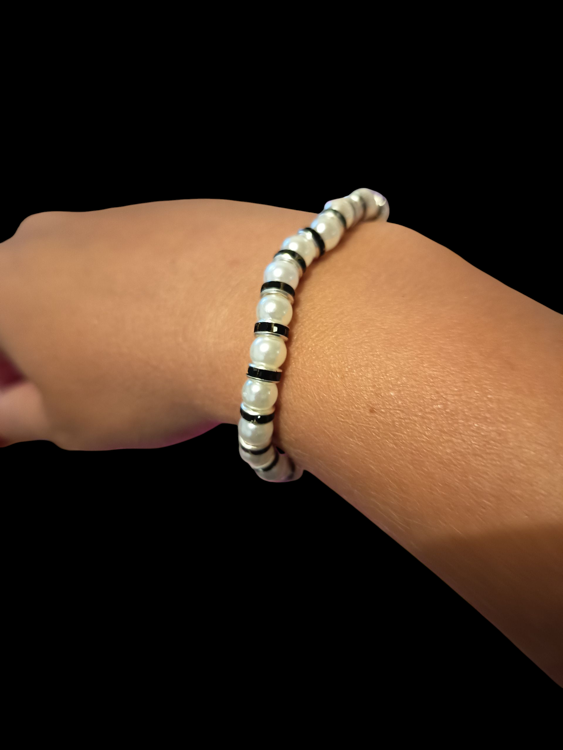 Ce bracelet de perle blanche avec séparateur de couleur est le choix parfait pour ajouter une touche d'élégance à votre tenue. Fabriqué à la main en France, ce bracelet est disponible en perles de 6 mm ou 8 mm et en deux tailles différentes de 15 et 18 cm. Commandez dès maintenant et profitez du savoir-faire artisanal français. Disponible sur commande